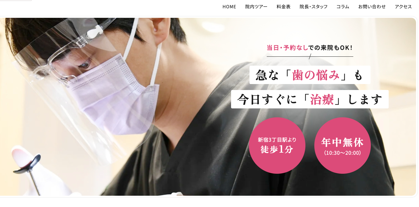 ※10時30分にご予約の患者様は恐れ入りますが新宿マルイ本館のオープン時間が11時のため、到着前に医院まで直接お電話を下さい。